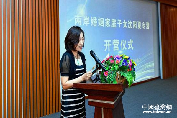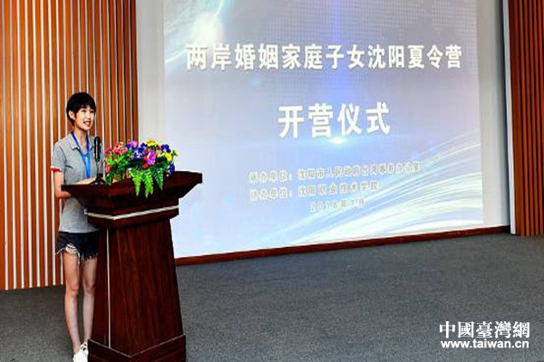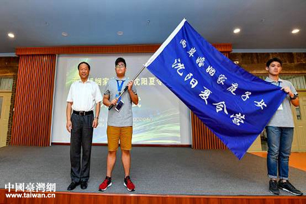 中国台湾网7月18日沈阳讯 近日,“感受抗战历史,传承爱国精神”两岸婚姻家庭子女沈阳夏令营在沈阳职业技术学院隆重开营。台湾两岸新家庭协会和侨光科技大学40位师生参加开营仪式。沈阳市台办副主任王莉、台湾两岸新家庭协会理事长蒋明霞、沈阳职业技术学院院长王久成、台湾学生代表林睿祺分别致辞发言。在开营仪式上,辽宁省台办副巡视员马戈向台湾学生代表授予营旗。