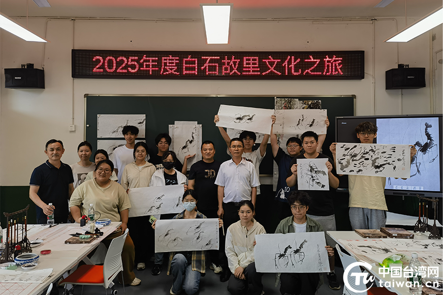 台湾大学生在白石中学学习创作齐白石书画(中国台湾网发)