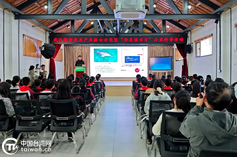 科普活动现场,学生及台青代表认真聆听长江江豚保护知识。(中国台湾网发)