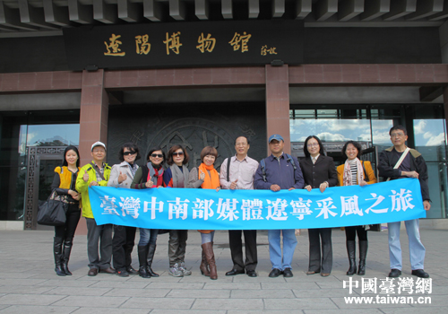 中国台湾网10月14日沈阳消息 秋高气爽,风清云淡。10月11日,以台湾高雄市新闻记者公会、高雄市记者协会理事长刘大钏为团长、港都广播电台翁碧莲为副团长的台湾中南部媒体记者团一行12人到辽阳采风。