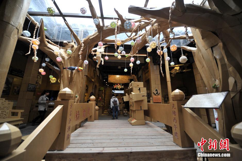 12月23日,福建首家台湾纸箱王创意园落户福州三坊七巷,创意园里结合了福州三坊七巷各个景点,打造一个梦幻的纸世界。吕明 摄