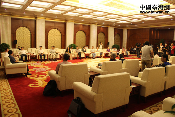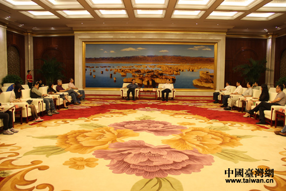 宁夏回族自治区领导会见“海峡两岸记者西北行”联合采访团现场。(中国台湾网 王文英 摄)
