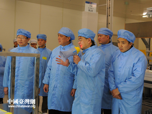 刘俊杰一行考察长智光电(四川)有限公司生产线。(图片来源:四川省台办)