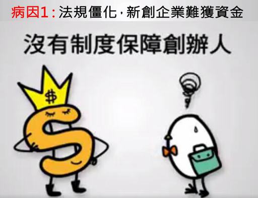 首先就是台湾地区的相关法规太僵化,不仅常常让新创企业陷入要钱还是要权利的挣扎中,同时也没有任何的福利和制度可以用来保障创业者。