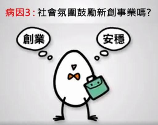 第三点就是台湾社会氛围对新创事业的影响。被新创事业极低的存活率所“牵累”,台湾很多父母并不是十分支持自己的儿女创业,宁愿让孩子选择一份挣得少但相对安稳的工作,也不愿意让他们冒险创业。