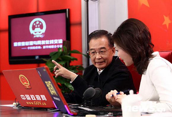 2月27日下午3时,中共中央政治局常委、国务院总理温家宝接受中国政府网、新华网联合专访,与广大网友在线交流。(来源:新华社)