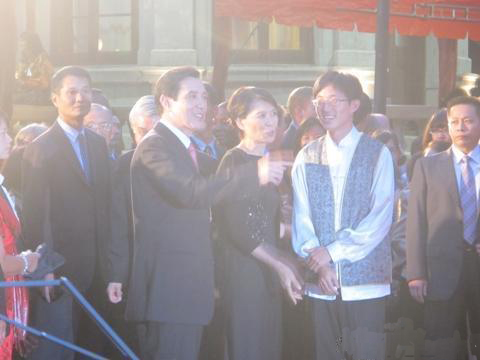周美青(右三)换穿黑礼服,摆脱“寒酸小气”的批评。图片来自台湾“今日新闻网”