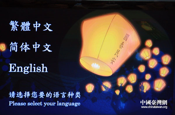 山水心灯,一句心语,可以用三种文字呈现。(中国台湾网 钟宝华 摄)