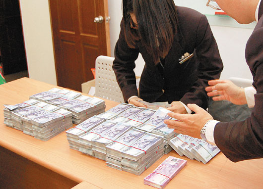 机场工作人员清点巨款。 来源:台湾《联合报》
