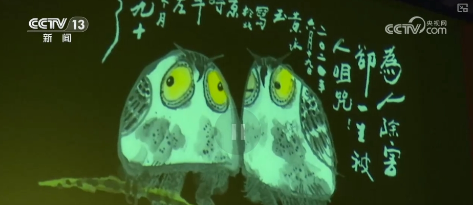 大家惊喜地发现,黄永玉的猫头鹰、青蛙,齐白石的虾等作品被制作成动画小视频。展厅里回荡着小鸟的歌声、青蛙的叫声、猴子的嬉闹声、潺潺的流水声……充满趣味和创意的数字化展陈方式,让一件件展品“活”了起来。