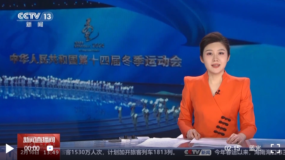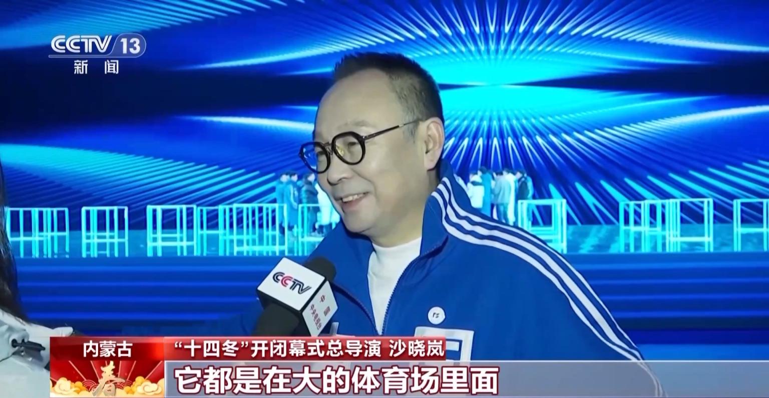 “十四冬”开闭幕式总导演 沙晓岚:比如说亚运会、大运会,包括北京冬奥会,它都是在大的体育场里面,大家看惯了运动会开幕式是大场面,可是来到我们这个场子,我们这个场子比较小,我们怎么能够以小见大?那么只有靠我们的虚拟技术。你看到的后面的地屏,包括后面的大屏,包括圆面的投影,还包括后面的景,这是一个多媒体数字舞台,再加上我们的AR技术,我们会把这个舞台一会儿放在冰天雪地里面,一会儿又把它放在一个大草原当中。我们这次可能追求的不是那种宏大,而是追求的一种精致,一种冰雪运动的美、雅。