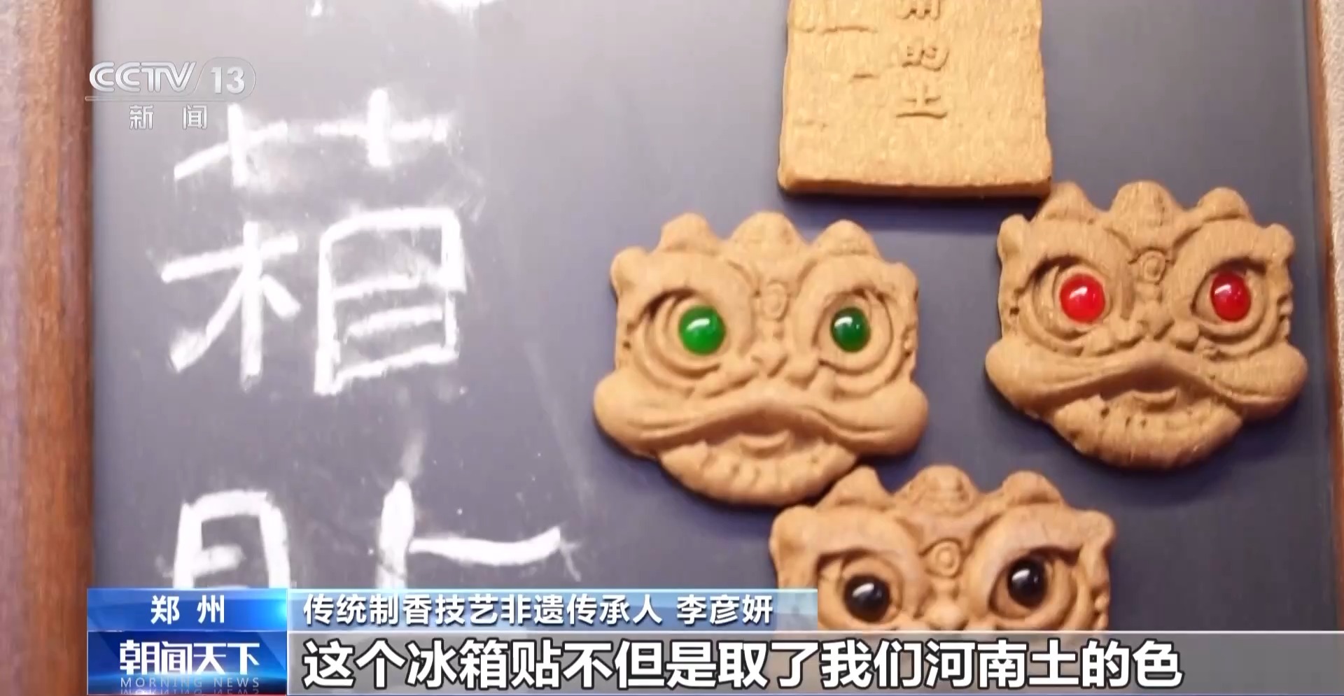 传统制香技艺非遗传承人 李彦妍:这个冰箱贴不但是取了我们河南土的色,而且整个冰箱贴的味道,也富含着泥土下过雨后的芬芳。目前我们有三家自营的店铺,在全国有将近五十家代理商。