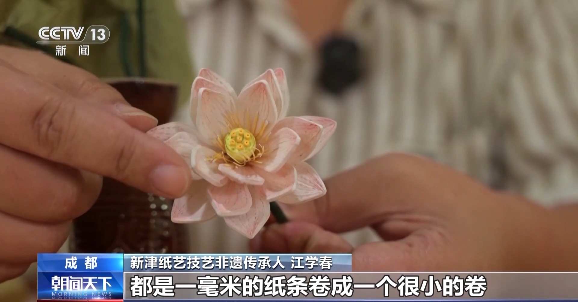 新津纸艺技艺非遗传承人 江学春:每一个花瓣都是一毫米的纸条卷成一个很小的卷。希望把纸条的很多形式都给它展现出来,把美好的东西一直能够传承下去。