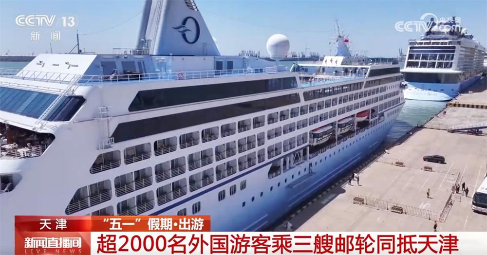 央视网消息:在各类利好政策助力下,外国人来华“中国游”正迎来又一波热潮。5月1日,在天津国际邮轮母港,超2000名外籍游客乘坐三艘邮轮同时抵达。这也是近年来,天津口岸迎来的最大批次的外籍游客入境。