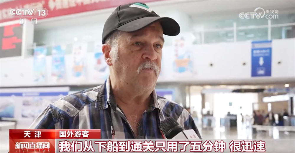 国外游客称:“这是我第二次来中国,每个人都很友善。我们来是为了度假,我们从下船到通关只用了五分钟,很迅速。”
