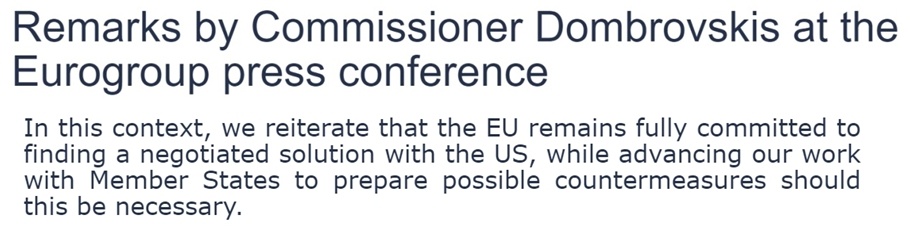 欧盟委员会执行副主席兼贸易委员东布罗夫斯基斯在会后的新闻发布会上重申,欧盟将继续寻求与美国通过谈判解决贸易分歧,同时也将推进与各成员国的合作,为在必要时采取可能的反制措施做好准备。