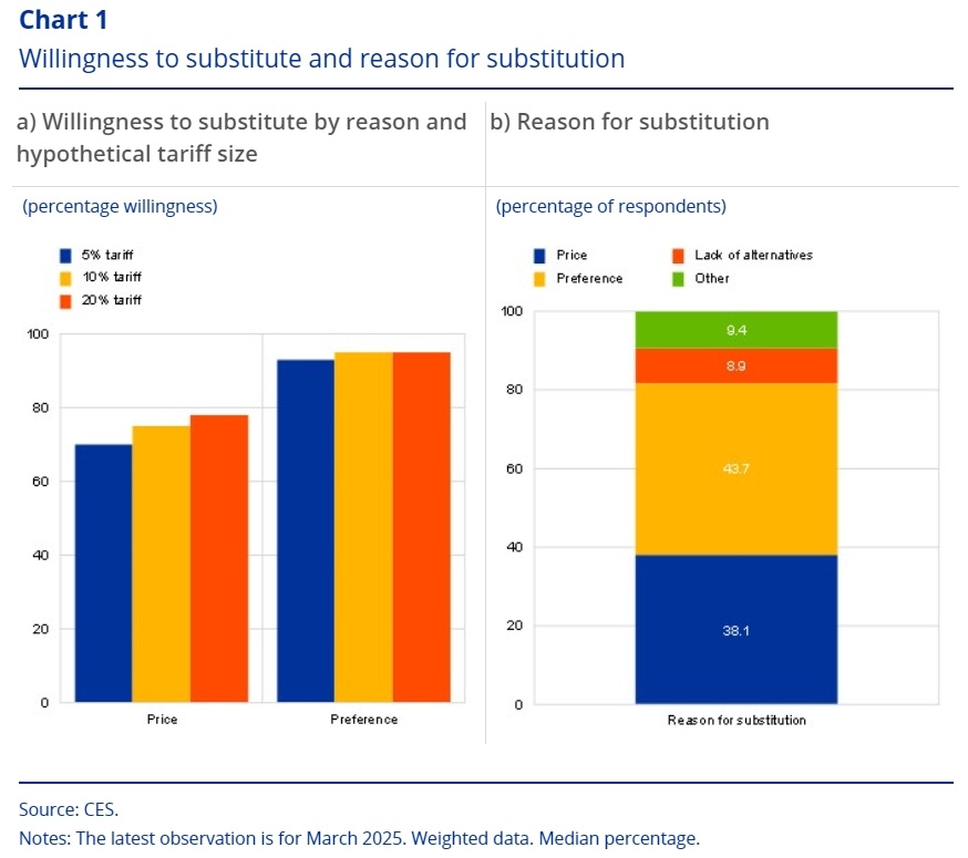欧洲央行消费者预期调查(CES)的数据显示,受美国关税影响,欧洲消费者“非常愿意主动放弃”美国产品和服务。调查还发现,这可能不只是对关税的暂时反应,而是持久性的态度转变。