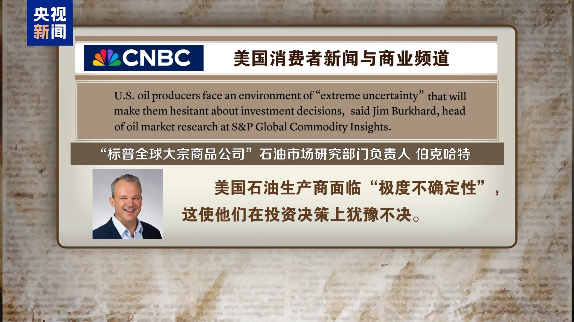 英国《金融时报》援引能源咨询公司经理马修·伯恩斯坦的话报道称,美国政府的关税政策是“行业长期以来面临的最大逆风之一”。他补充说:“如果这种状况持续并且引发经济衰退,那么今年美国石油行业可能将毫无增长。”