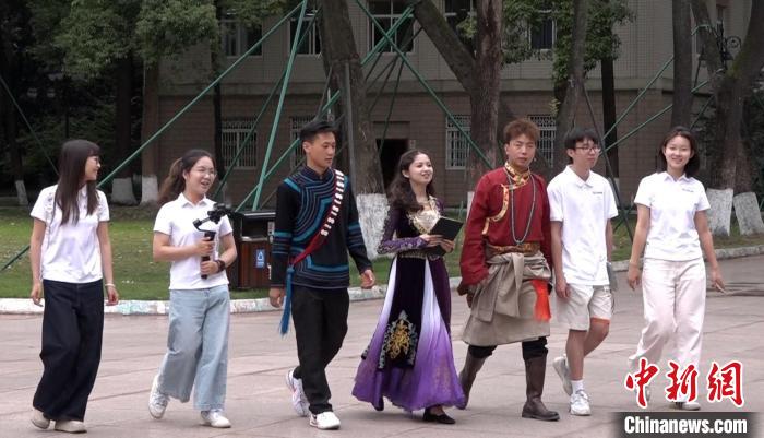 5月15日,多民族“主播团”的部分成员在西南民族大学校园。 陈选斌 摄