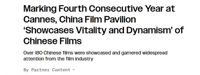 当地时间5月15日,美国《综艺》杂志发表文章,题为:亮相戛纳国际电影节,中国电影联合展台“展现中国电影的生机与活力”。