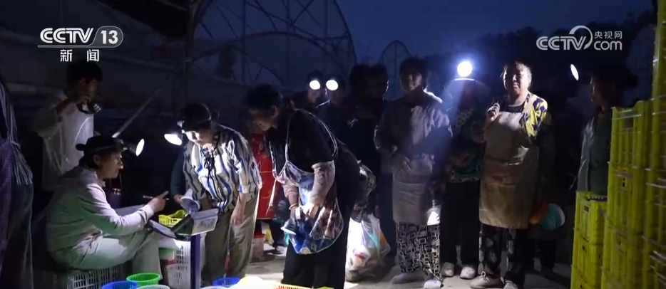 夜幕降临,赵棚镇团山村的基质蓝莓基地却一片繁忙。记者在基地大棚看到,工人们借着灯光熟练地采摘、打包新鲜蓝莓。