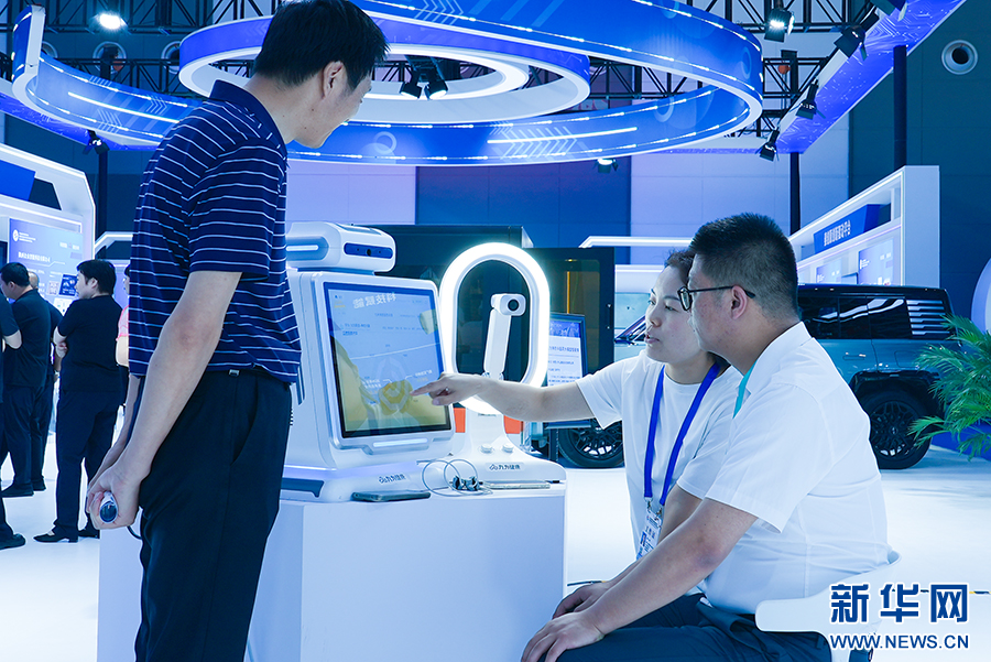 5月22日,在丝博会科技创新展馆,参展商向观众介绍中医药大模型智能体。新华网 杨喜龙 摄