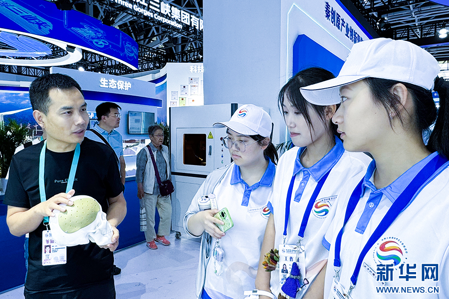 5月22日,在丝博会科技创新展馆,参展商向观众介绍医疗用3D打印植入物产品。新华网 杨喜龙 摄