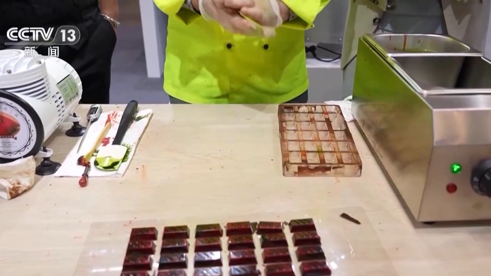 总台记者 胡浩然:除了智能科技带来的新体验之外,在欧洲精品巧克力展区还可以现场体验制作和品鉴一块来自匈牙利的巧克力。