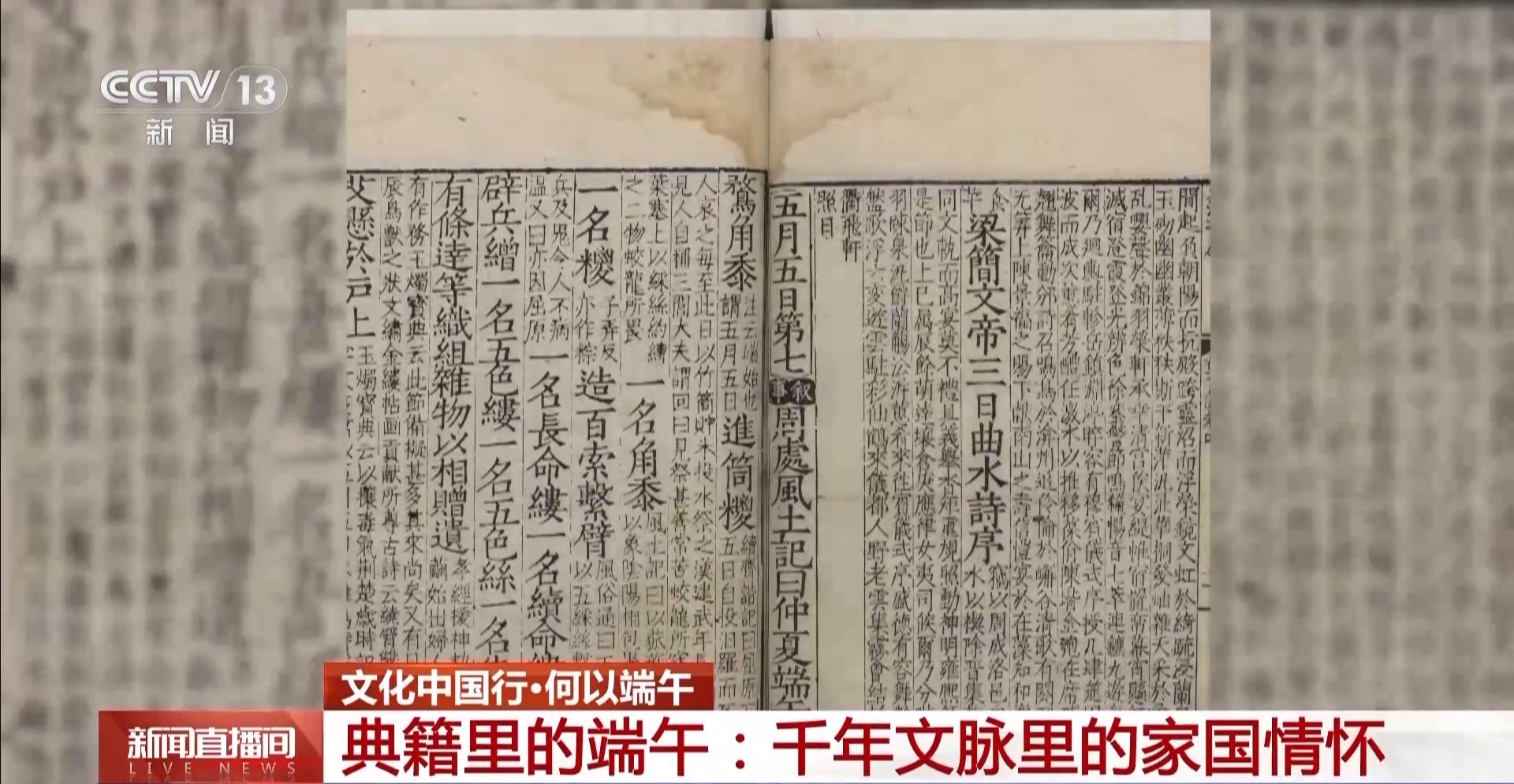 端午节是我国首个入选世界非物质文化遗产的节日,既有独特的自然物候特征,又有深厚的民族文化内涵。从典籍里,我们去品读端午,更能感受这种延续千年的自然风貌和跨越古今的家国情怀。
