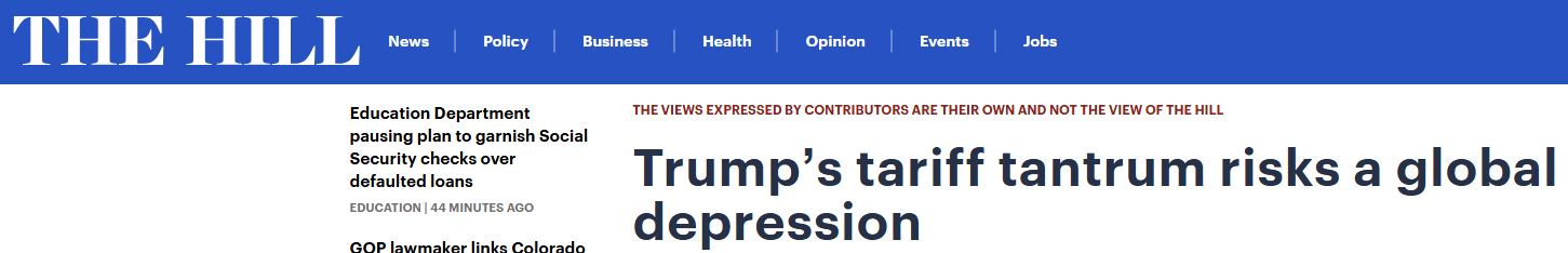 此外,来自《国会山报》近日的一篇署名文章认为,美国的关税措施或将重创欧洲大陆,损害美国经济,并减缓全球经济增长。