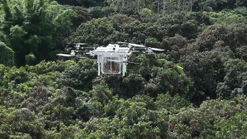 6月28日,在广州市从化区天人山水荔枝园,物流无人机运输刚刚采摘的荔枝。