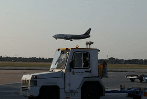 6月29日,搭载着荔枝的航班准备降落西安咸阳国际机场。