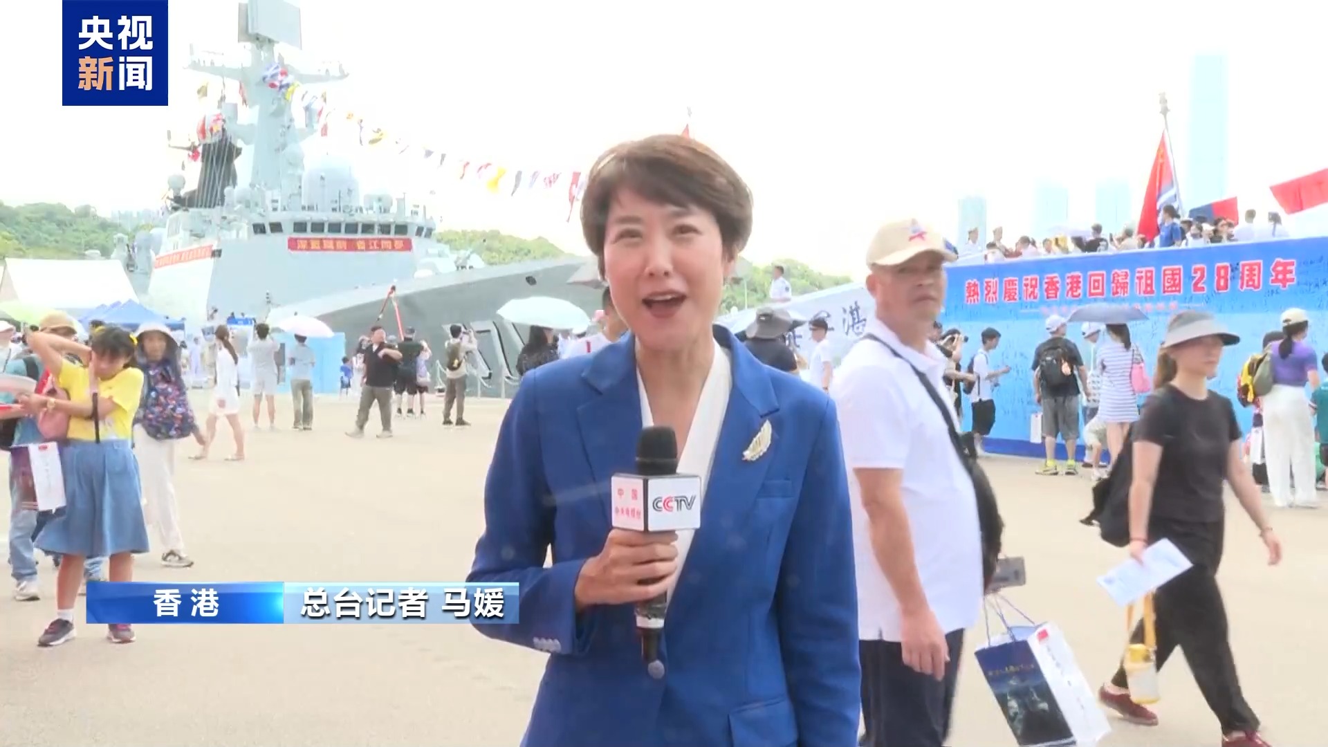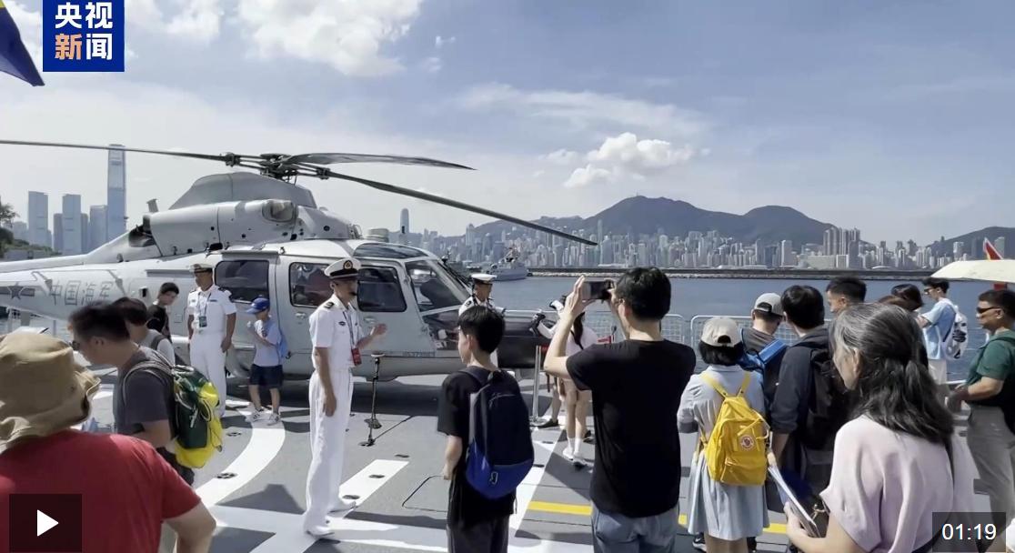 总台记者 马媛:我现在是在昂船洲军营码头,山东舰艇编队7月3日抵达香港,今天是抵港第4天,也是公众开放日的第二天,明天山东舰艇编队将要离开香港。