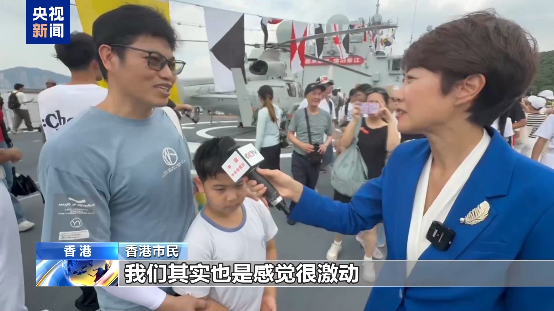 香港市民:非常震撼。前几天听说航母编队来香港,我们很激动,今天专门请假带孩子过来。因为孩子从小就很崇拜解放军,今天(6日)有机会就带他过来感受一下我们祖国的强大。今年是香港回归祖国28周年,我感觉中国海军各方面的军备力量都得到了不同维度的提升,我们都很有安全感。国家强大了,我们也非常自豪。