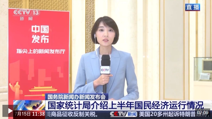 首先是中外媒体最为关注的,上半年我国国内生产总值同比增长5.3%,增速高于去年同期和去年全年,延续了一季度以来向新向好的发展态势。