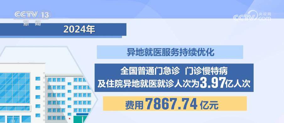 2024年,异地就医服务持续优化,全国普通门急诊、门诊慢特病及住院异地就医就诊人次为3.97亿人次,费用7867.74亿元。