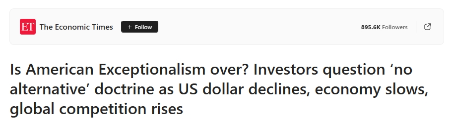这种压力更体现在全球市场的态度转变中。彭博社(Bloomberg)指出,经济学家将美国资产的吸引力归为所谓“美国例外论”,但特朗普政府第二任期内,贸易保护主义加剧、与司法部门冲突不断、试图掌控美联储等独立机构的一系列举动,让投资者怀疑美国是否仍是最佳投资地。