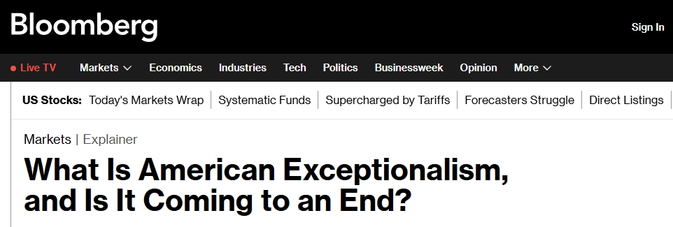 中国日报网7月18日电 所谓“美国例外论”——认为美国在价值观、治理体系和经济韧性方面具有独特性甚至优越性,一直以来影响着美国国家认同和全球投资策略。然而,近期多家外媒及专业人士指出,因经济政策的不确定性、创纪录的财政赤字等因素影响,这种说法正受到重新审视。