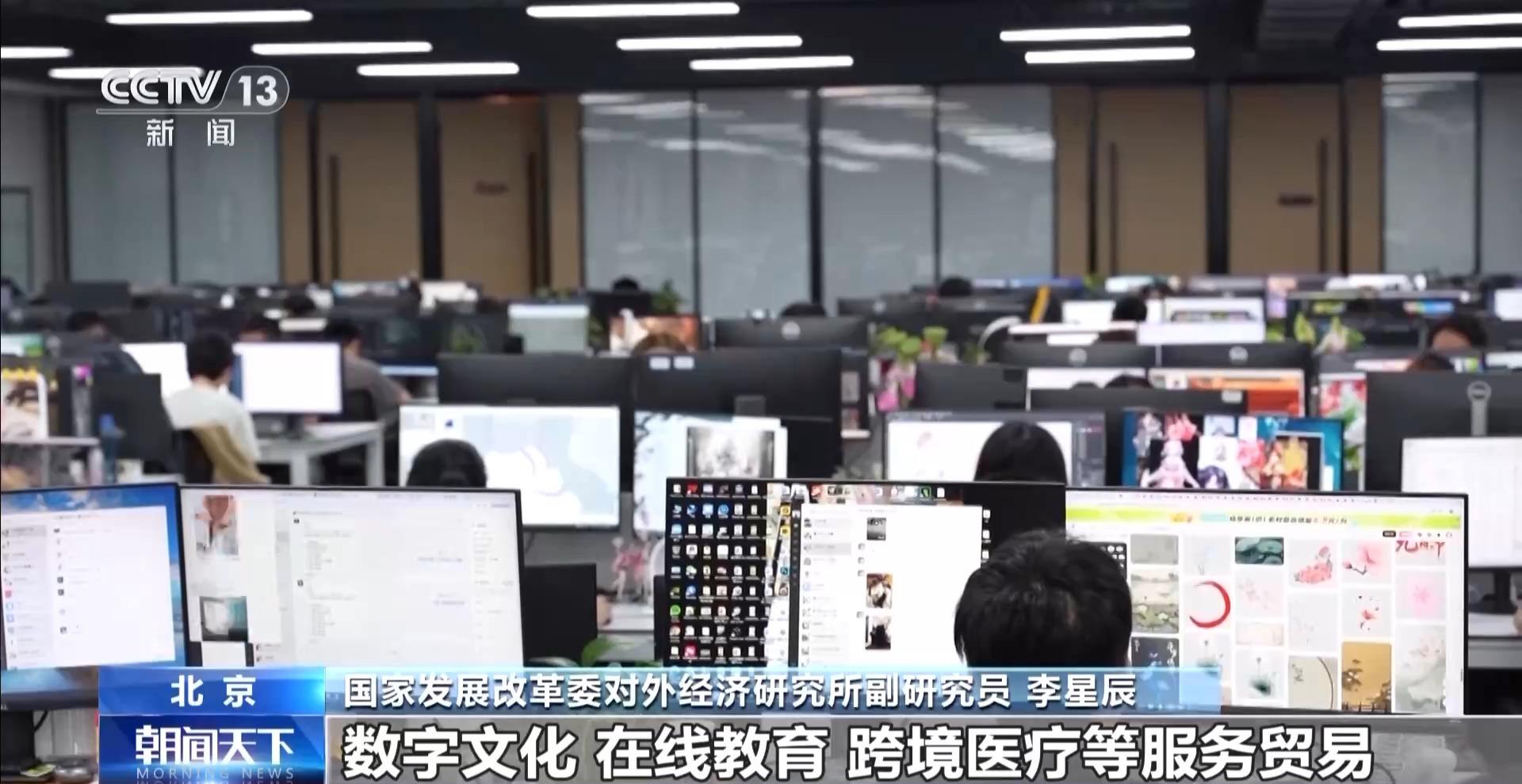 国家发展改革委对外经济研究所副研究员 李星辰:数字文化、在线教育、跨境医疗等服务贸易新业态模式加速“走出去”,我国电信计算机和信息服务在国际市场的吸引力不断提升,加上我国不断深化服务业改革,研发设计、法律咨询等高端专业服务国际认可度和市场竞争力持续提升,数字贸易成为推动服务贸易在全球价值链位势攀升的新动能。