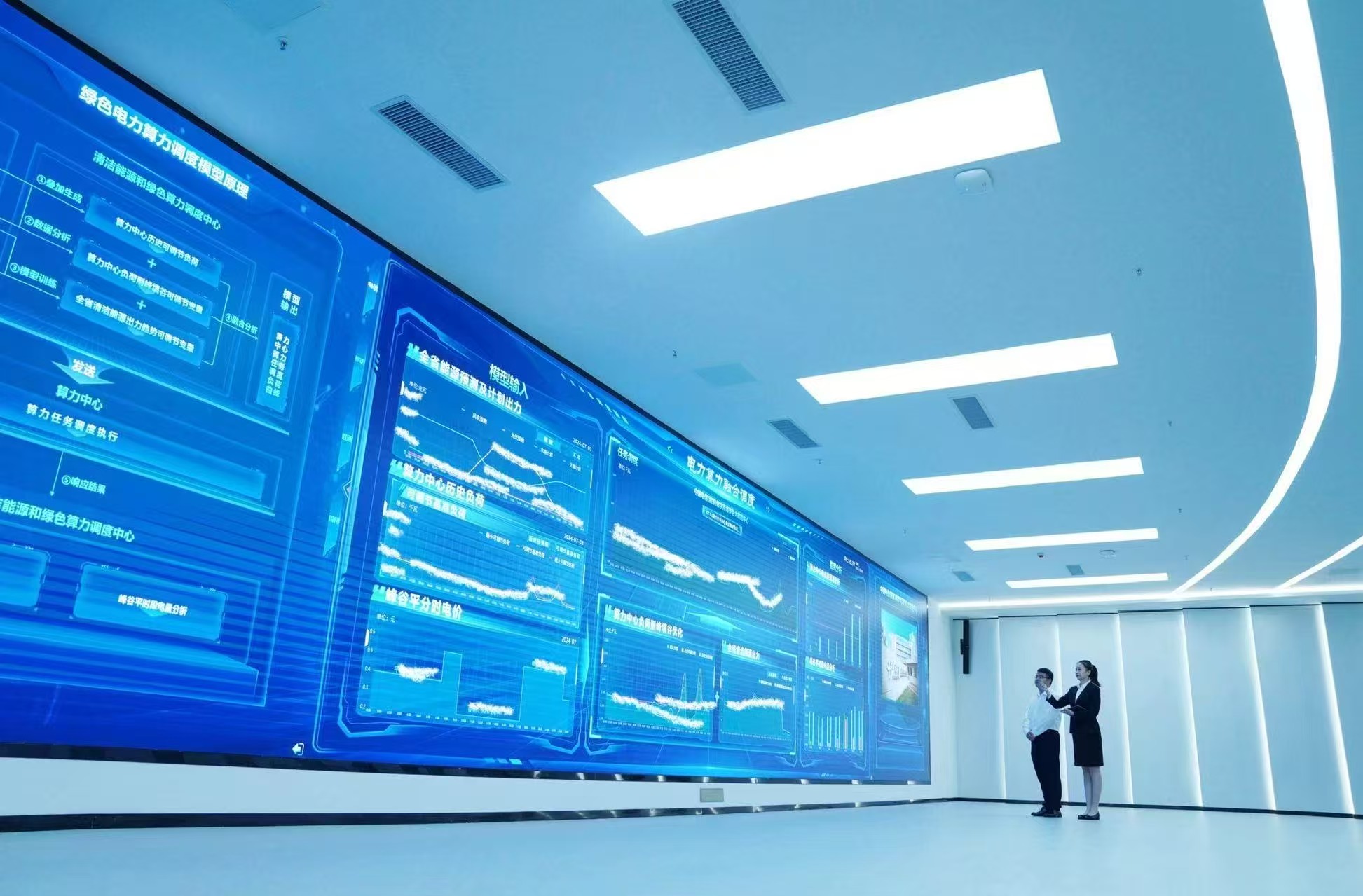 走进位于青海省西宁市的全国首个清洁能源和绿色算力调度中心,记者看到大型电子屏幕清晰显示着全省风、光、水等各类清洁能源发电量以及重点用能企业能耗变化情况。现场工作人员介绍,该中心由国网青海省电力公司在原有大数据中心平台基础上升级打造,是覆盖全省的“电力+算力”融合调度平台,现由青海绿能数据有限公司负责运营。