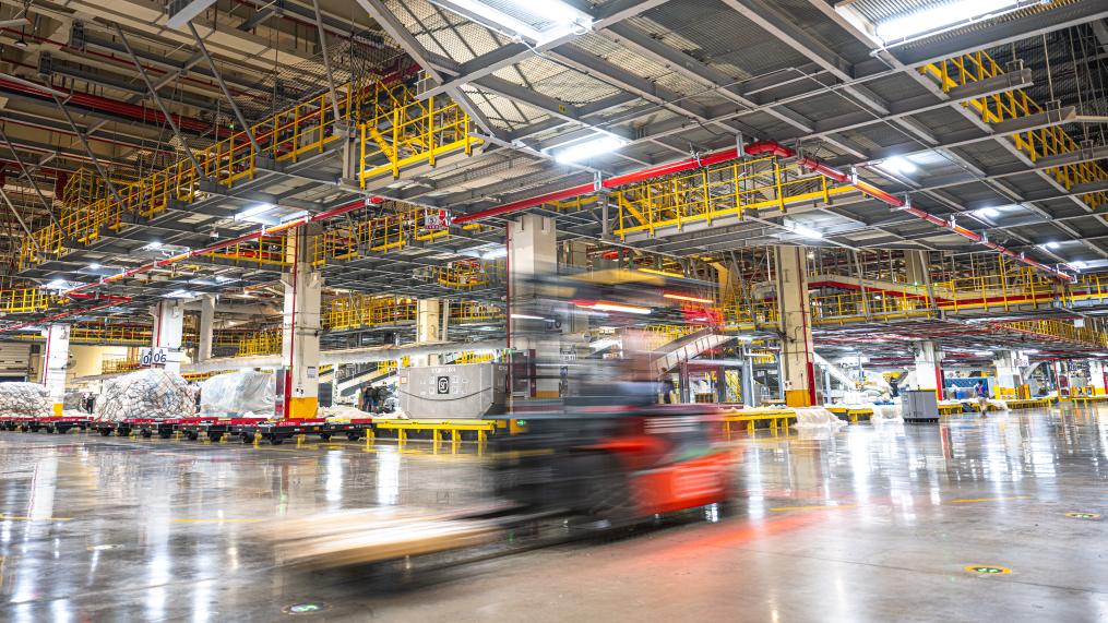 跟随转运车,记者来到了建筑面积达75万平方米的机场“工”字形转运中心。这里,“快点、快点”的催促声与机器有节律的运行声形成交响,在2万多台自动分拣设备和50多公里长传送带的支持下,工人们熟练地将数量规格不一的包裹抱起、分类、组合、打包,再拼装出多个符合航空货运规格和形状要求的大包裹。
