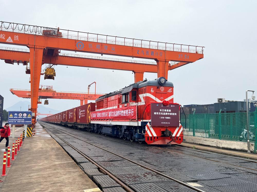 △2026年2月17日,义乌“有情有义 世界义乌”城市文化品牌中欧班列首次开行。