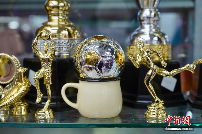 经营奖杯、奖牌的商户金丽英说,今年以来的外贸订单同比增长约15%,其中融入足球、和平鸽等元素的产品最受欢迎。