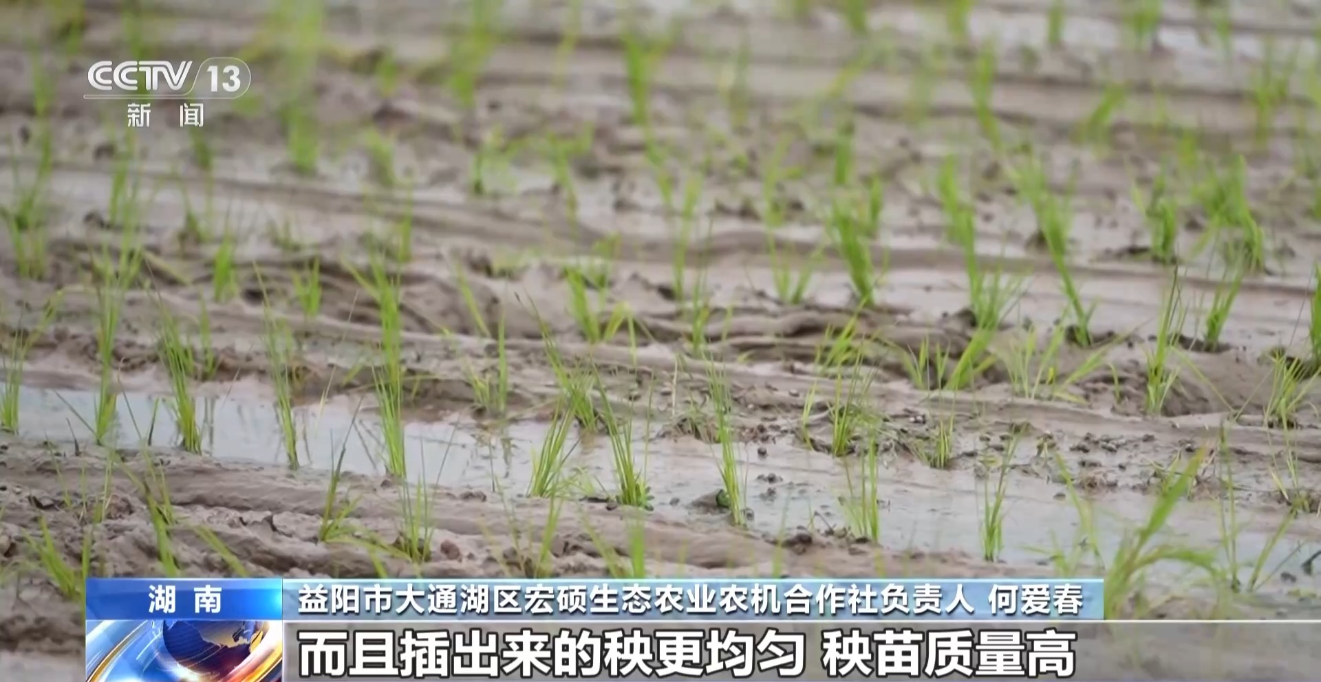 益阳市大通湖区宏硕生态农业农机合作社负责人 何爱春:每亩减少人工成本50元,而且插出来的秧更均匀,秧苗质量高,利于后期通风透气和田间管理,从而达到增产增收的效果。