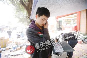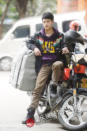 昨日,重庆晚报记者找到了照片中的快递小哥,他叫蒋洋洋,今年19岁,在这之前,已经有不止一个人说他很像“都教授”。