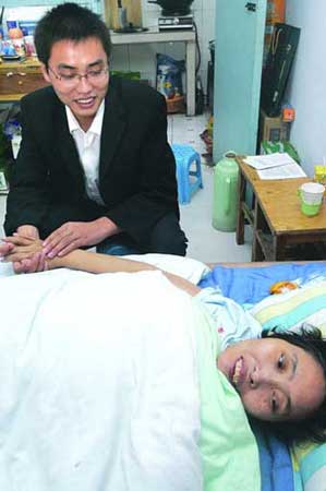 10月6日,家住郑州西郊的岳大妈带着礼物,登门看望马明母子。刚进门,岳大妈就开始心疼躺在床上的马明母亲了:“你能翻身不?躺着不动会长褥疮的。”岳大妈今年已经71岁了,她家里有一个小时候因得了大脑炎留下后遗症的儿子需要照顾,这些年学了不少护理知识。