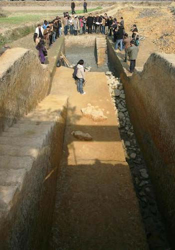 考古人员第一想法是,可能是河堤之类的水利工程;但也有人说,可能是城墙,因为在东侧200米处,就是良渚文化中心的莫角山遗址——之后的挖掘证明了这个猜想,这大堆的黄土就是良渚古城的西城墙,稻田下的那条沟渠是护城河。