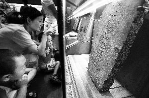 昨天,在中国人民抗日战争纪念馆的展厅内,一位母亲在为孩子们讲解张自忠将军初葬碑。