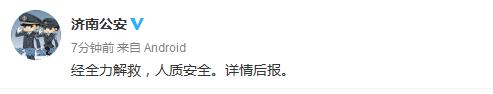 济南市公安局刚刚通报称,经全力解救,人质安全。