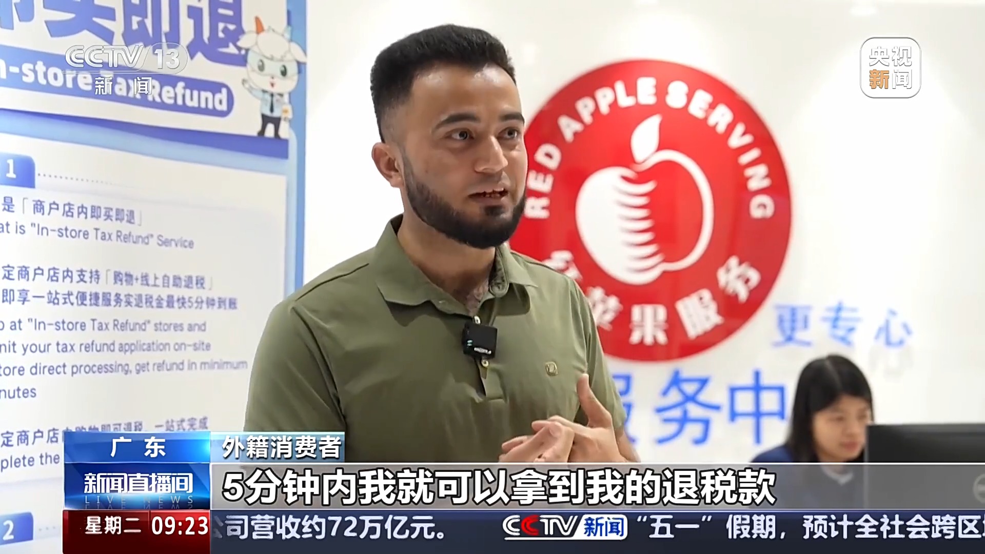 广交会带来了人气,离境退税“即买即退”的政策,也让外国游客在华消费更为便利。在广州,这个“五一”假期,不少商场都迎来了大批外国消费者。
